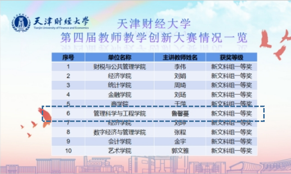 此次比赛进一步激励、引导教师围绕一流课程建设,继续深化教学内容、教学方法和教学手段改革。同时,管科学院也会结合新时代教师队伍建设的新要求,继续加强教师教学能力培育,持续提升教师教学素养和课程教学质量,全面提升本科教学水平。