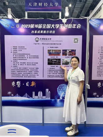 此次年会,管科学院派出管信系单春玲老师担任领队,带领项目负责人张冉冉同学制作项目展板并前往参会。会上,张冉冉同学向评审专家和参会师生展示项目并进行细致讲解,充分展现了天财学子的创新风采。该项目也得到了教育部专家们的进一步指导和好评。