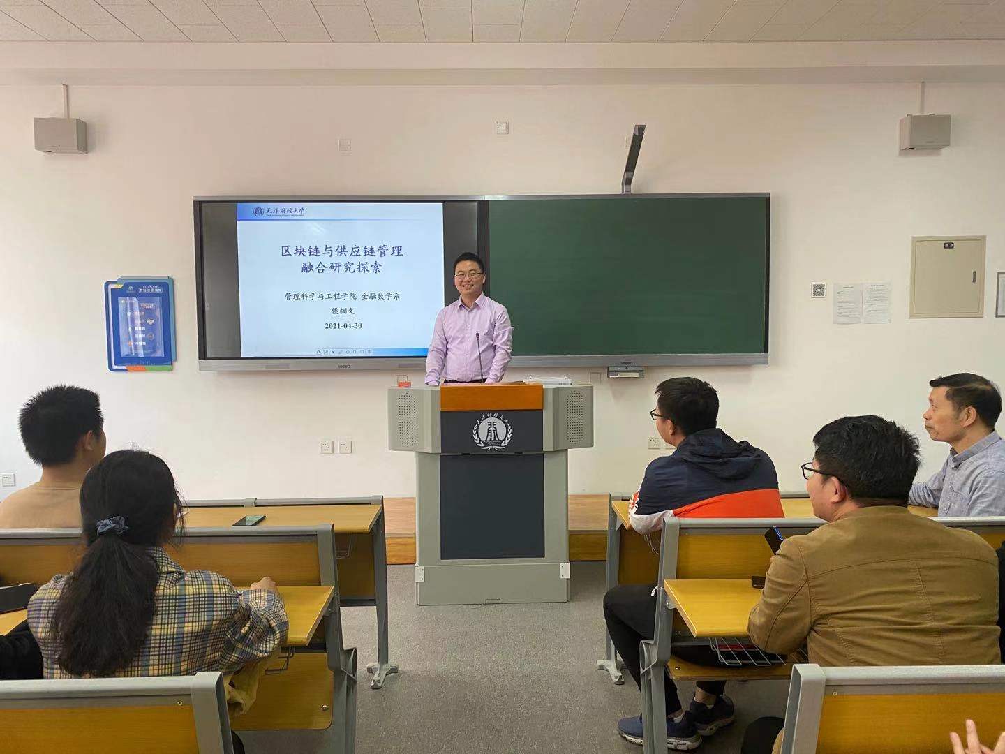 2021年4月30日,beat365第七期天财创智讲堂在新教学科研楼N3117成功举办。管科学院金融数学系教师侯棚文做了题为“品牌制造商基于区块链技术的欺诈性仿冒品防治策略 (Blockchain Adoption for Combating Deceptive Counterfeits)”的讲座。