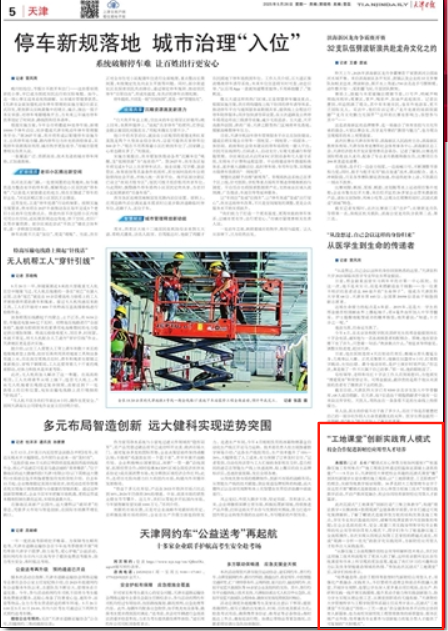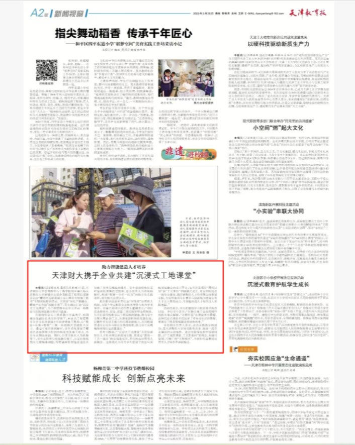 《天津日报》以“‘工地课堂’创新实践育人模式 校企合作促进新财经应用型人才培养”为题,对此次实践教学活动进行了报道。